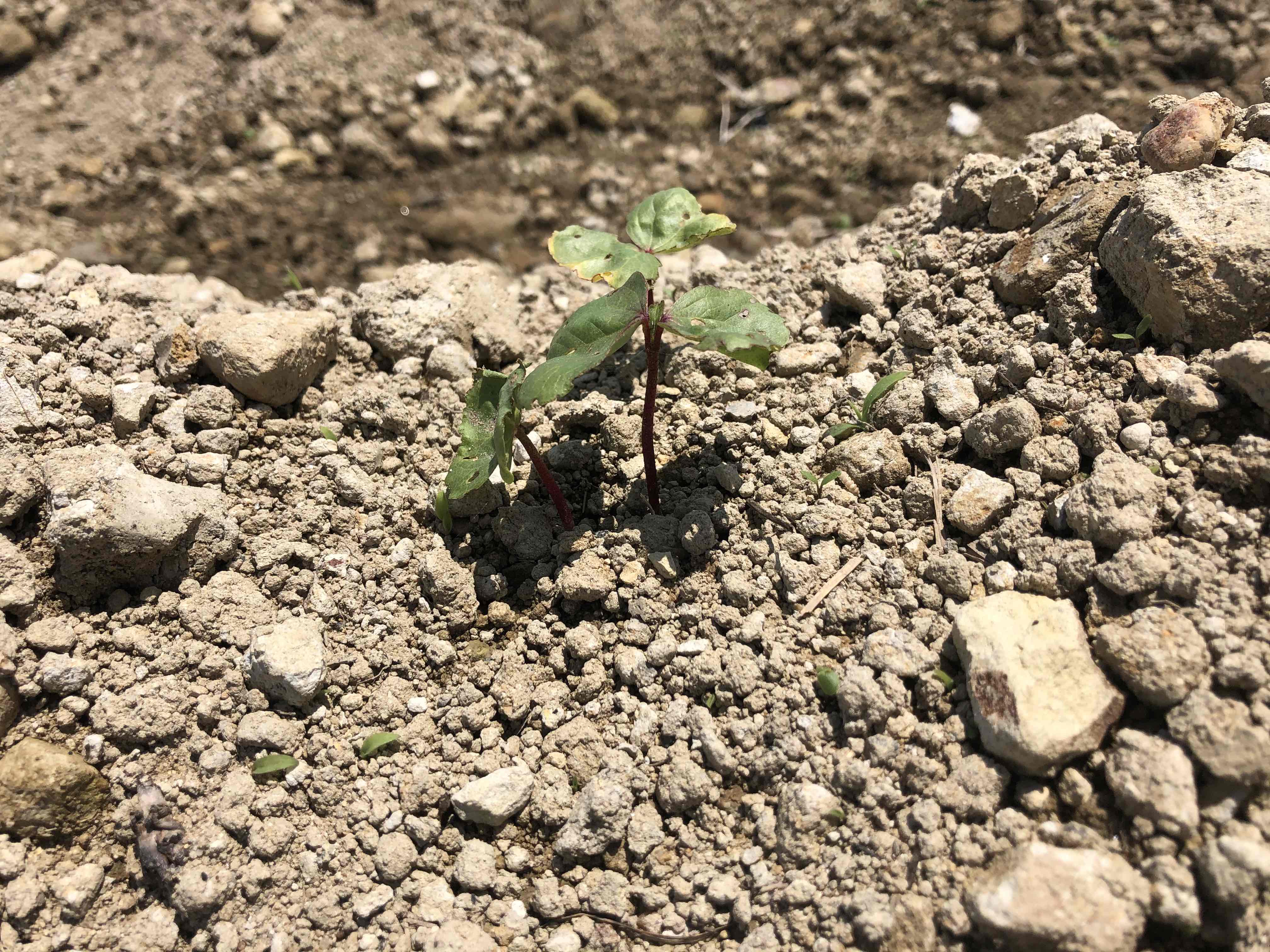 発芽率3割以下。残念状況です。特に土が悪い畑なので「塩害に強い」と言われ、東北各地の津波被災地で栽培が行われた綿花でも育つのは大変そう。